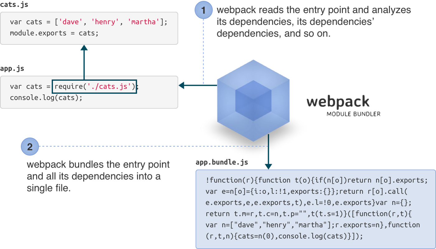 When webpack processes your application, it recursively builds a dependency graph that includes every module your application needs,
